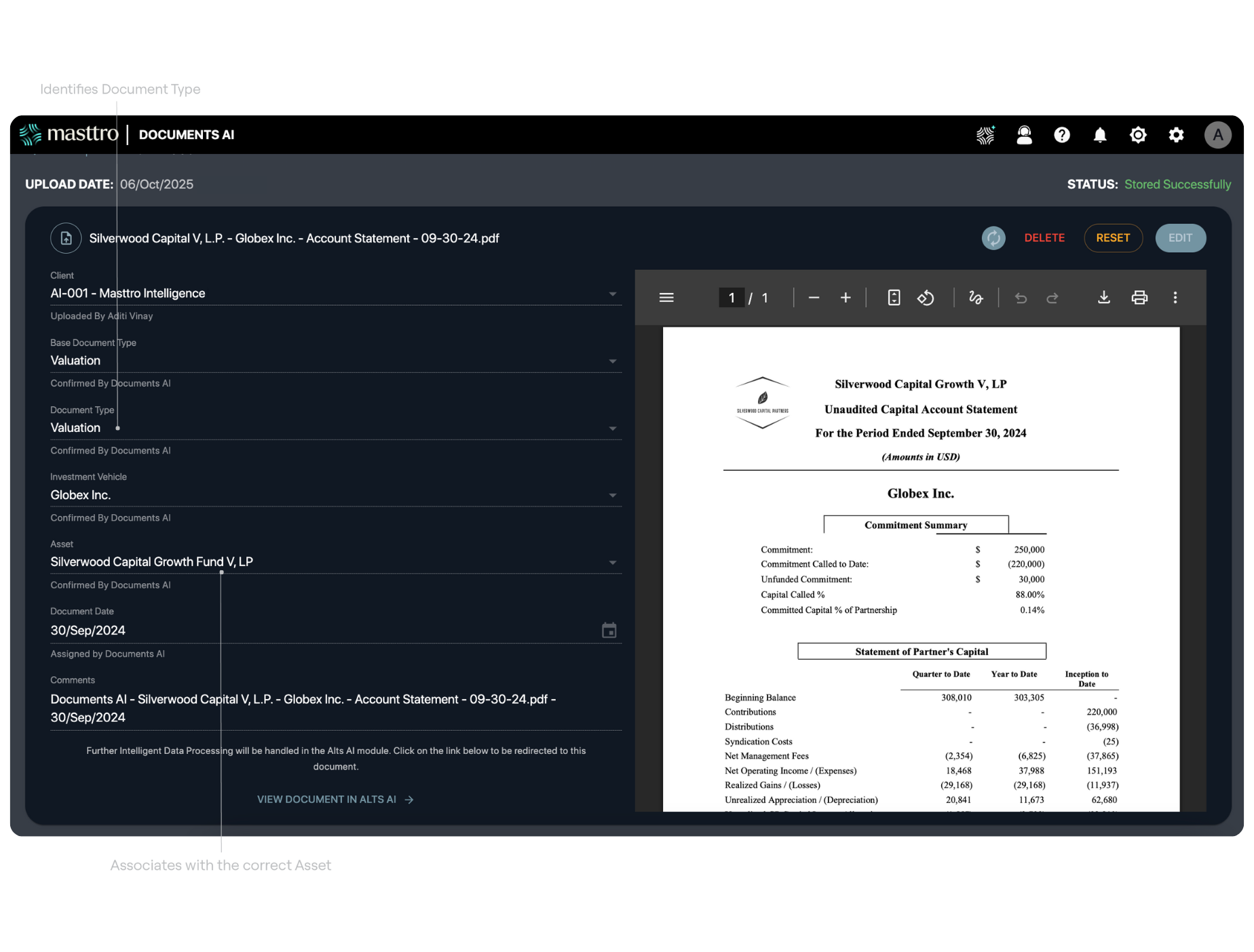 Categorize at account and asset level; specify deposit/withdrawal details for detailed record of capital calls, distributions, and fees.